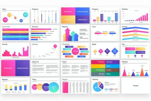 这是一套彩色的数据统计和信息图表设计keynote模板,简洁清晰的图表模板,文件内包含了100页的数据统计页面和信息图表元素。