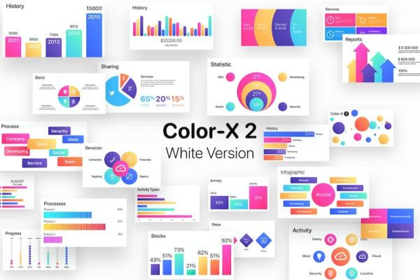 这是一套彩色的数据统计和信息图表设计keynote模板,简洁清晰的图表模板,文件内包含了100页的数据统计页面和信息图表元素。可以用在财务汇报、后台管理页面设计、ppt演示文稿、或者app的统计数据等设计中。所有形状、文本和图表均可通过Keynote编辑。